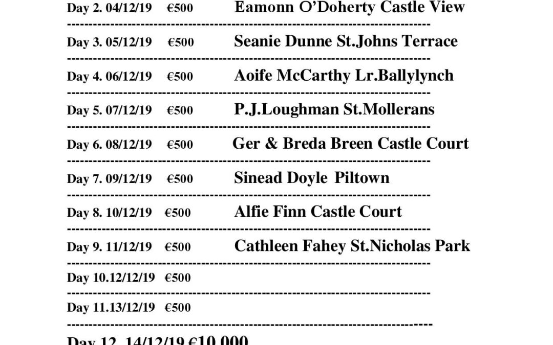 Carrick Swan xmas draw results 2019