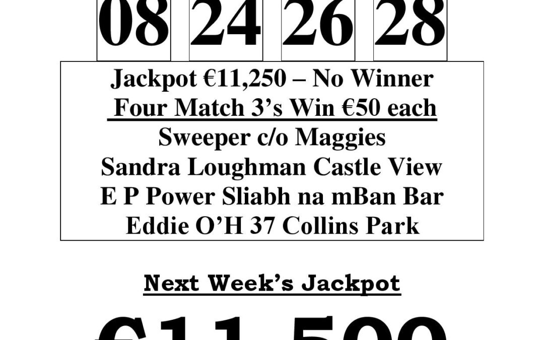 Carrick Swan Juvenile Lotto Results 06th Nov. ‘25