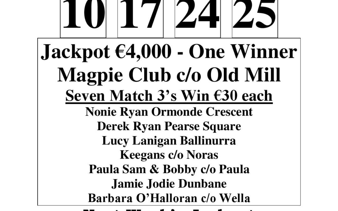 Carrick Swan Juvenile Lotto Results 16th Oct. ‘25