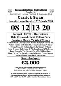 Carrick Swan Juvenile Lotto Results 13th Nov. ‘25