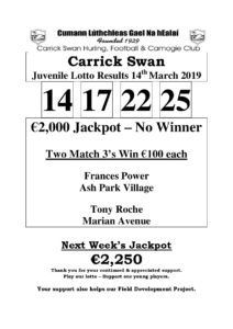 Carrick Swan Juvenile Lotto Results 26th February ‘26
