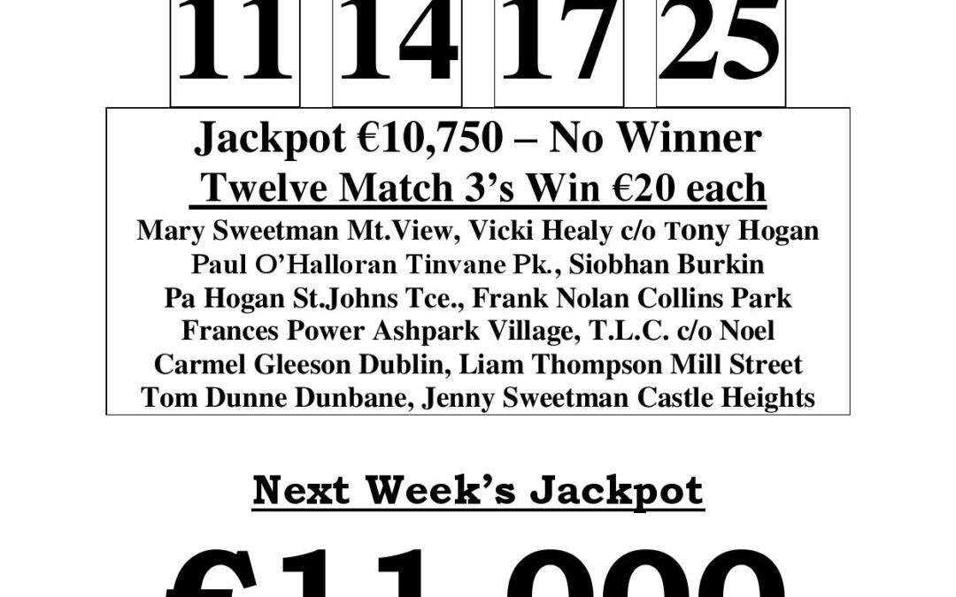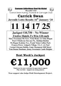Carrick Swan Juvenile Lotto Results 11th Dec. ‘25