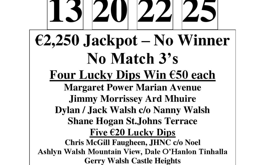 Carrick Swan Juvenile Lotto Results 26th February ‘26