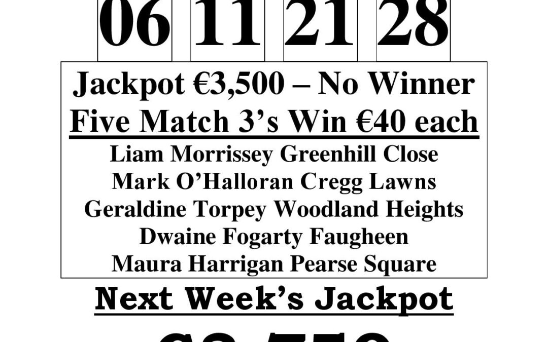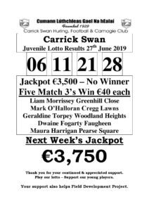 Carrick Swan Juvenile Lotto Results 09th Oct. ‘25