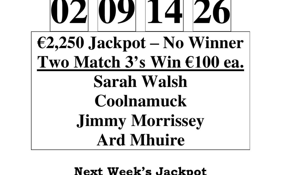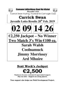 Carrick Swan Juvenile Lotto Results 02nd April ‘26