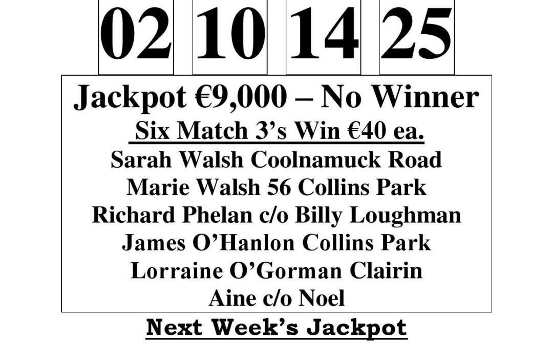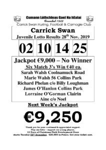 Carrick Swan Juvenile Lotto Results 09th Oct. ‘25