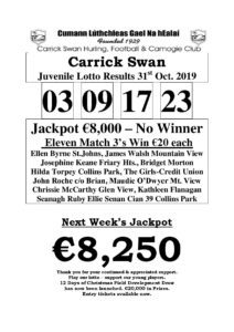Carrick Swan Juvenile Lotto Results 11th Dec. ‘25