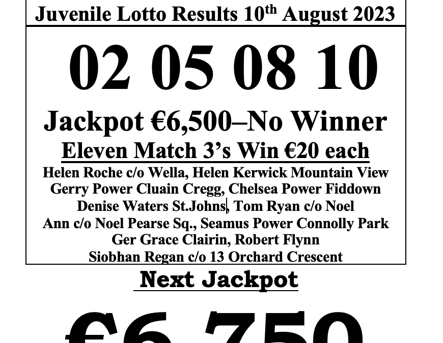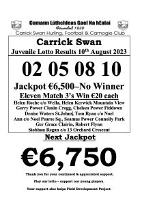 Carrick Swan Juvenile Lotto Results 11th Dec. ‘25
