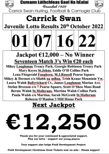 Carrick Swan Juvenile Lotto Results 18th Dec. ‘25