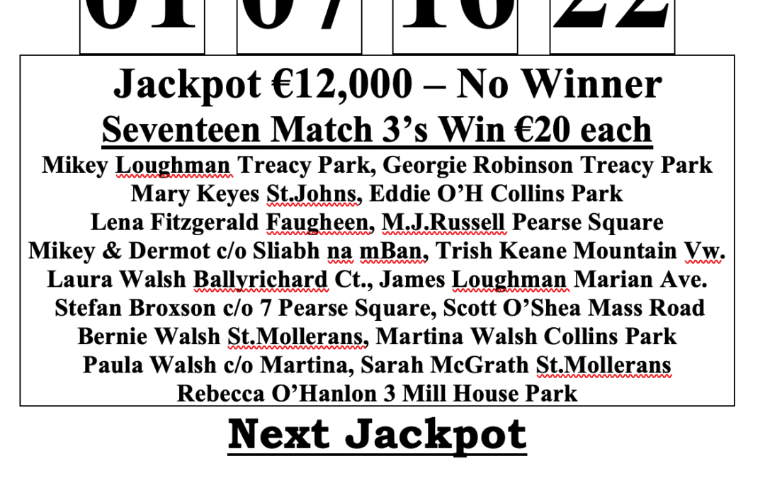 Carrick Swan Juvenile Lotto Results 11th Dec. ‘25