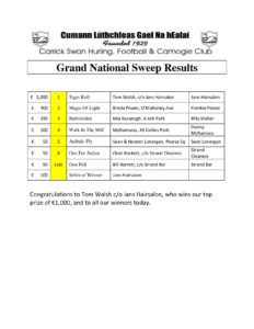 Carrick Swan Juvenile Lotto Results 03rd Jan. ‘26