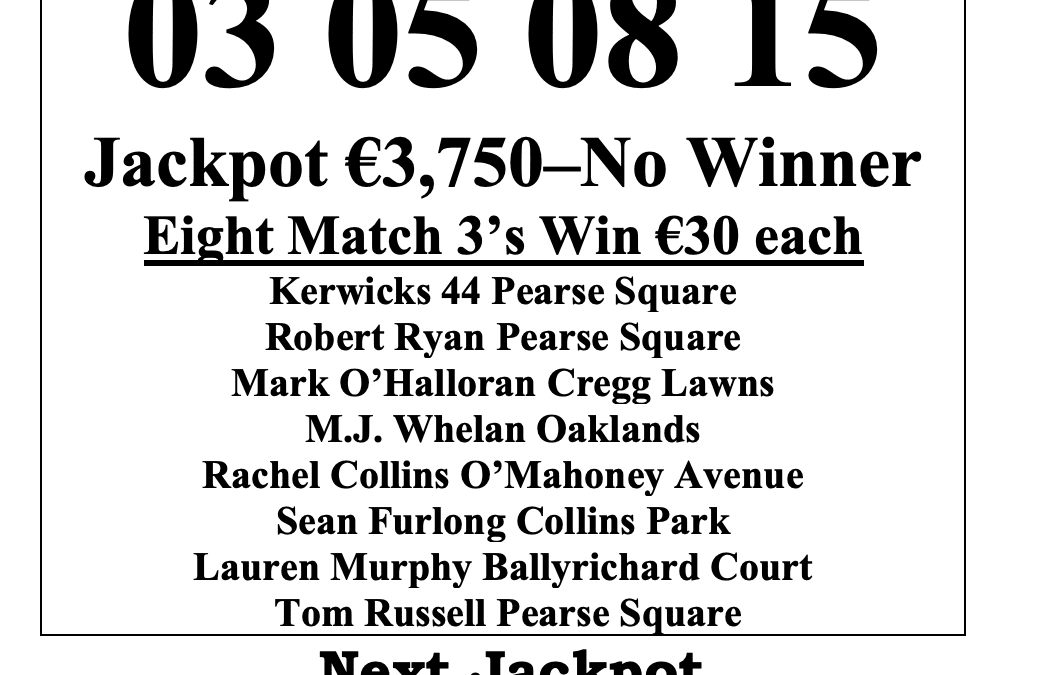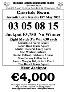 Carrick Swan Juvenile Lotto Results 04th Dec. ‘25