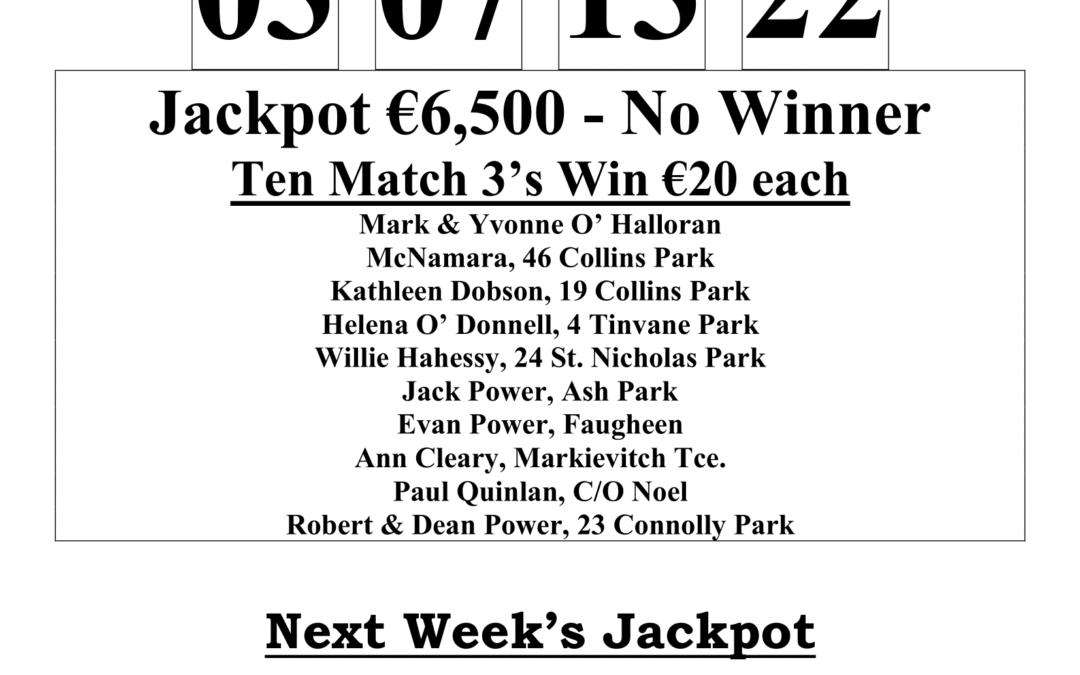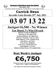 Carrick Swan Juvenile Lotto Results 09th Oct. ‘25