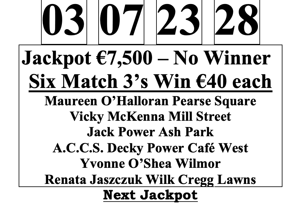 Carrick Swan Juvenile Lotto Results 23rd Oct. ‘25